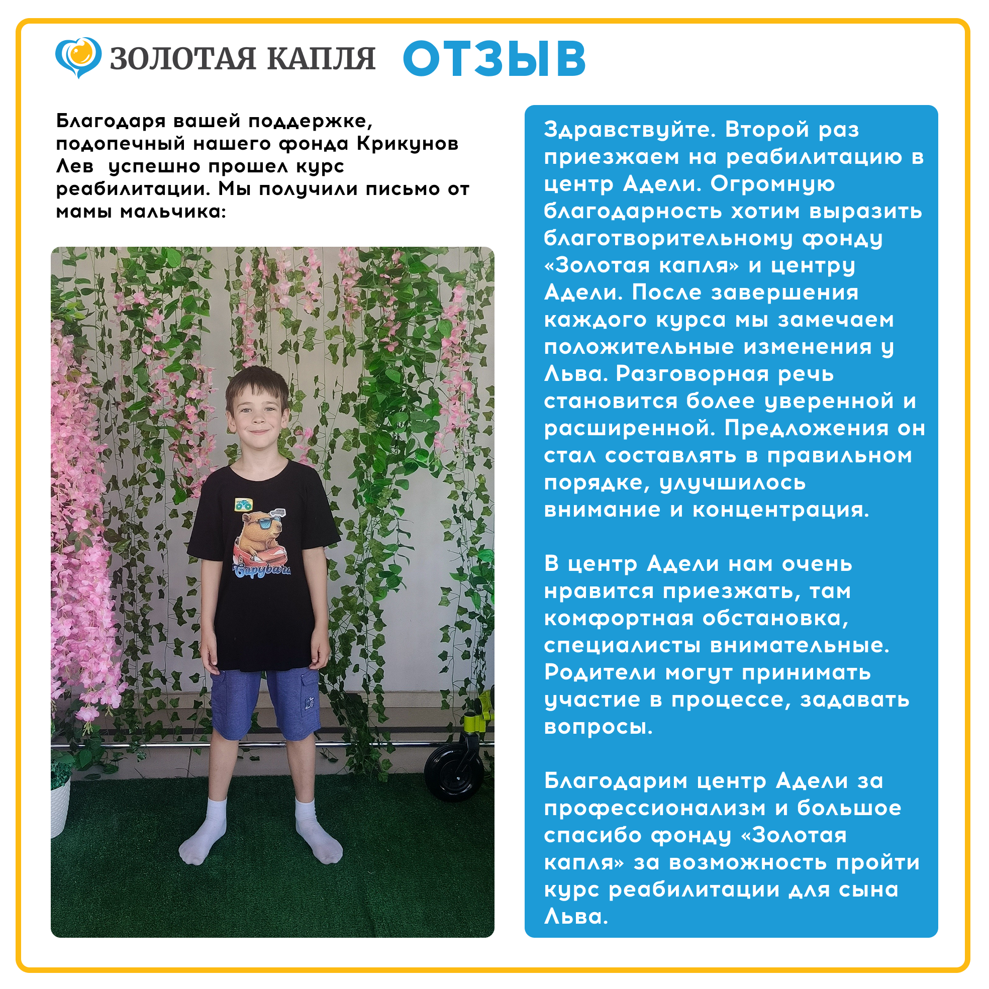 Ваша доброта продолжает творить чудеса! На этот раз своими успехами делится Лев Крикунов, который благодаря вашей поддержке завершил курс реабилитации.