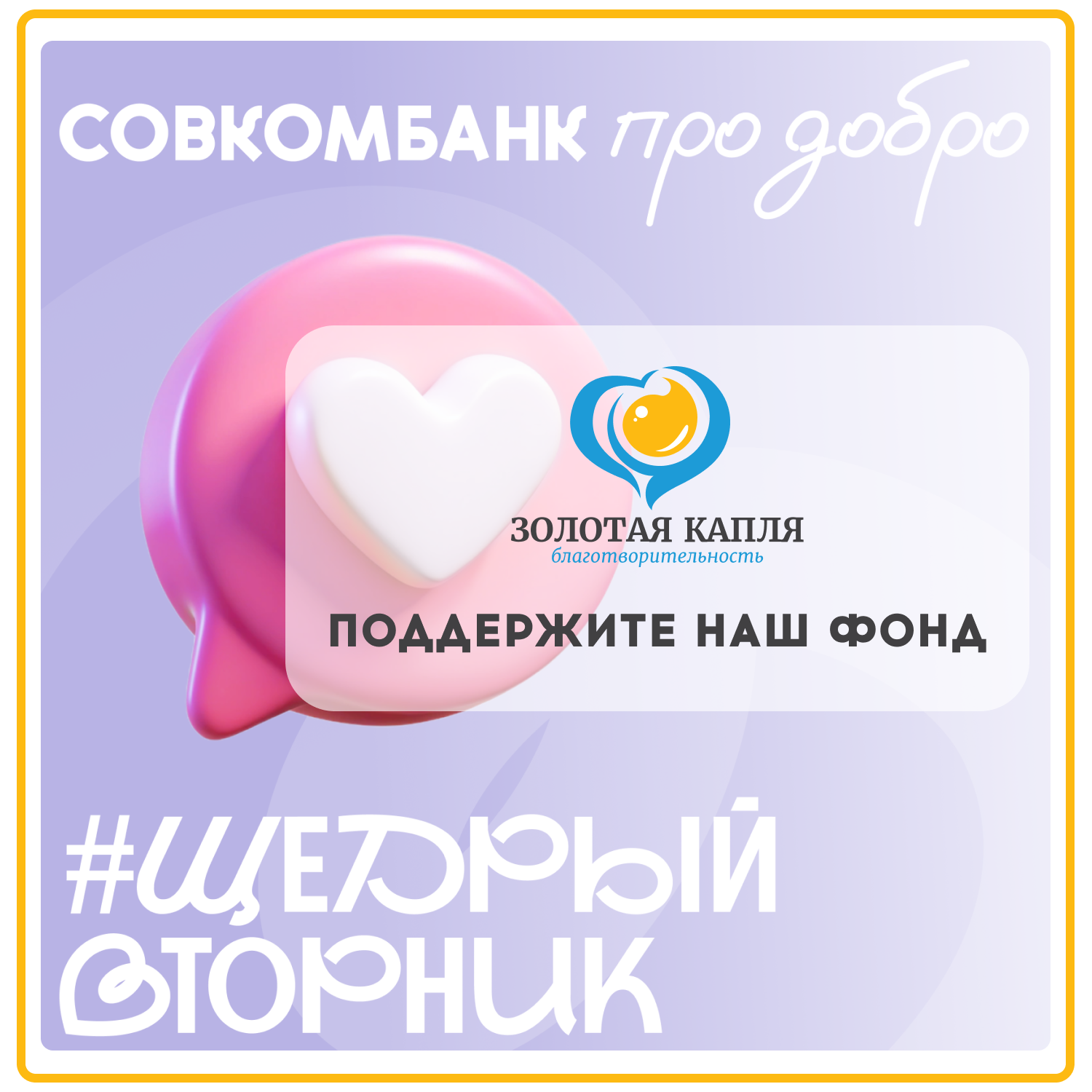 Завтра 2 декабря платформа «Совкомбанк про добро» @sovcombank_prodobro присоединяется к глобальной акции #ЩедрыйВторник и подарит 5 фондам по 1 миллиону рублей. Наш фонд тоже может получить эти средства, поэтому просим вас поддержать нас и проголосовать именно завтра за «Золотую каплю»!