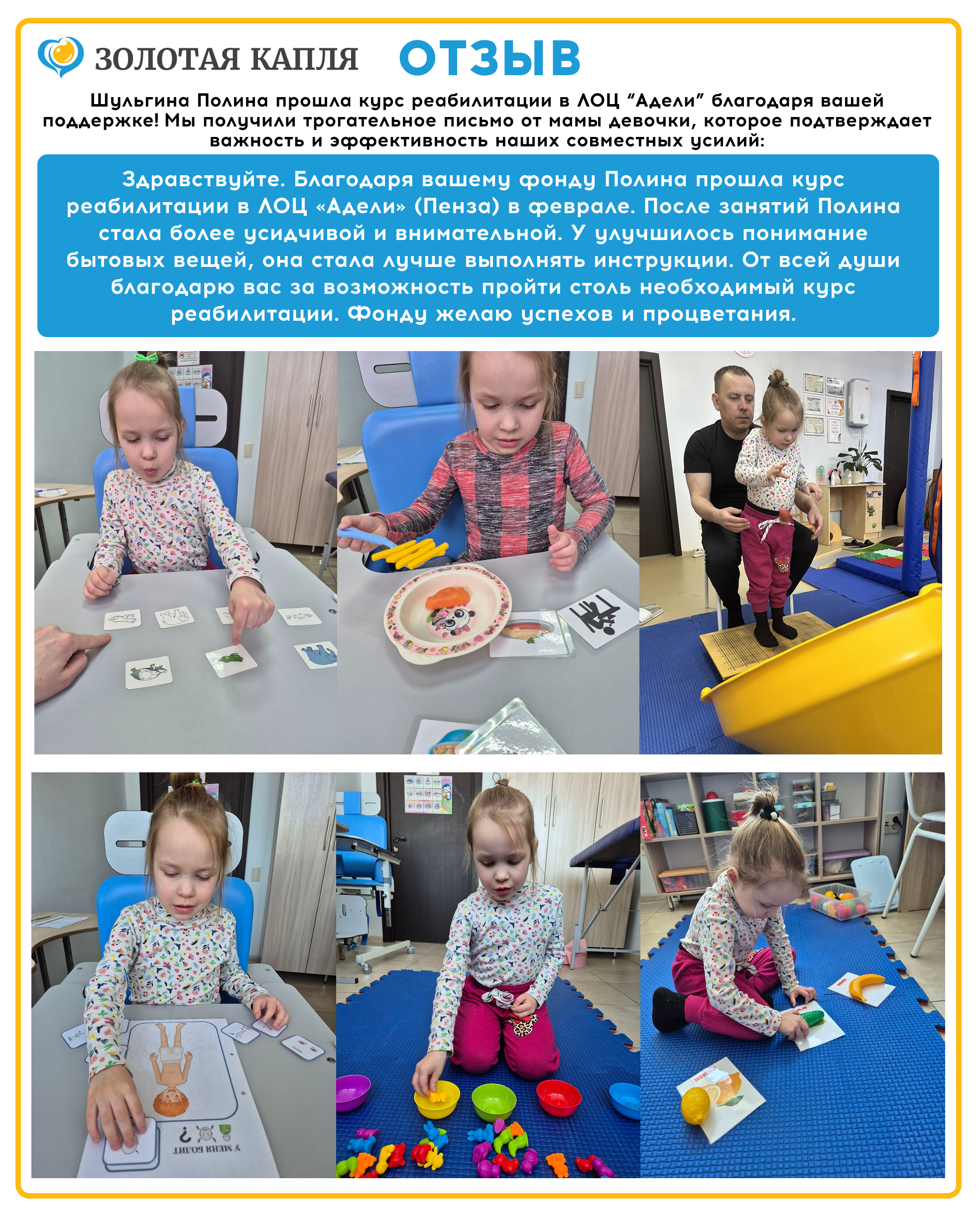 Полина Шульгина прошла курс реабилитации! Девочка стала сильнее, увереннее и счастливее - и всё это благодаря вашей поддержке.