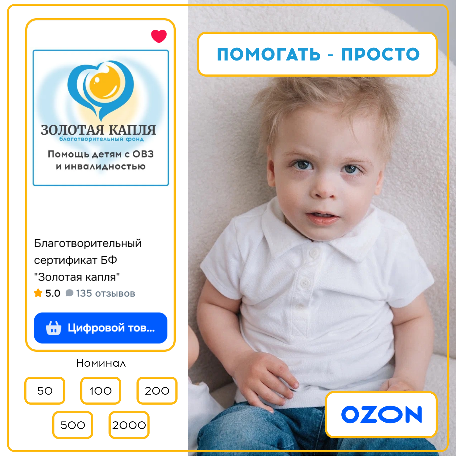 Поддержать наших подопечных можно буквально за минуту - с помощью благотворительных сертификатов Ozon.