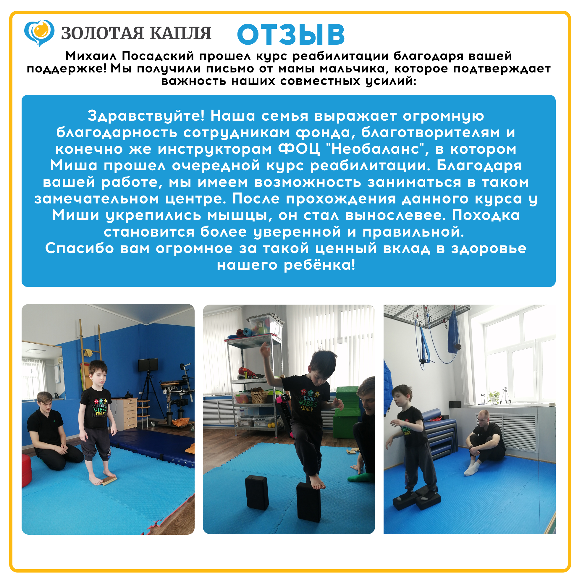 Друзья, спешим поделиться с вами радостной новостью. Благодаря вашим пожертвованиям наш подопечный Посадский Михаил успешно прошел курс реабилитации!